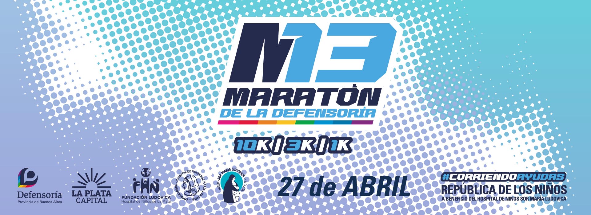 La Defensoría del Pueblo bonaerense realiza 13ª Maratón a total beneficio del Hospital de Niños Sor María Ludovica de La Plata, el próximo 27 de abril en la República de los Niños, a partir de las 8.La Maratón de la Defensoría cuenta con tres modalidades: 10K Competitivo, 3K Adultos participativo, 3K Menores (hasta 10 años inclusive es gratis), y 1K Infantil (hasta 10 años inclusive es gratis). Con el lema #CorriendoAyudas, el organismo que conduce Guido Lorenzino invita a participar de esta jornada solidaria y deportiva que organiza junto a la Municipalidad de La Plata, el Hospital de Niños Sor María Ludovica, la Fundación Ludovica y la Cooperadora del Hospital de Niños de La Plata.