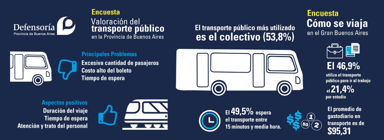 El informe, basado en una encuesta de cerca de 1.000 casos, se realizó entre octubre y noviembre de 2019 en 24 partidos del Conurbano bonaerense y en distintas ciudades de la Provincia. A través del relevamiento, el organismo provincial buscó conocer cómo utilizan el transporte público los usuarios y qué piensan del servicio de colectivo, trenes y subterráneo.