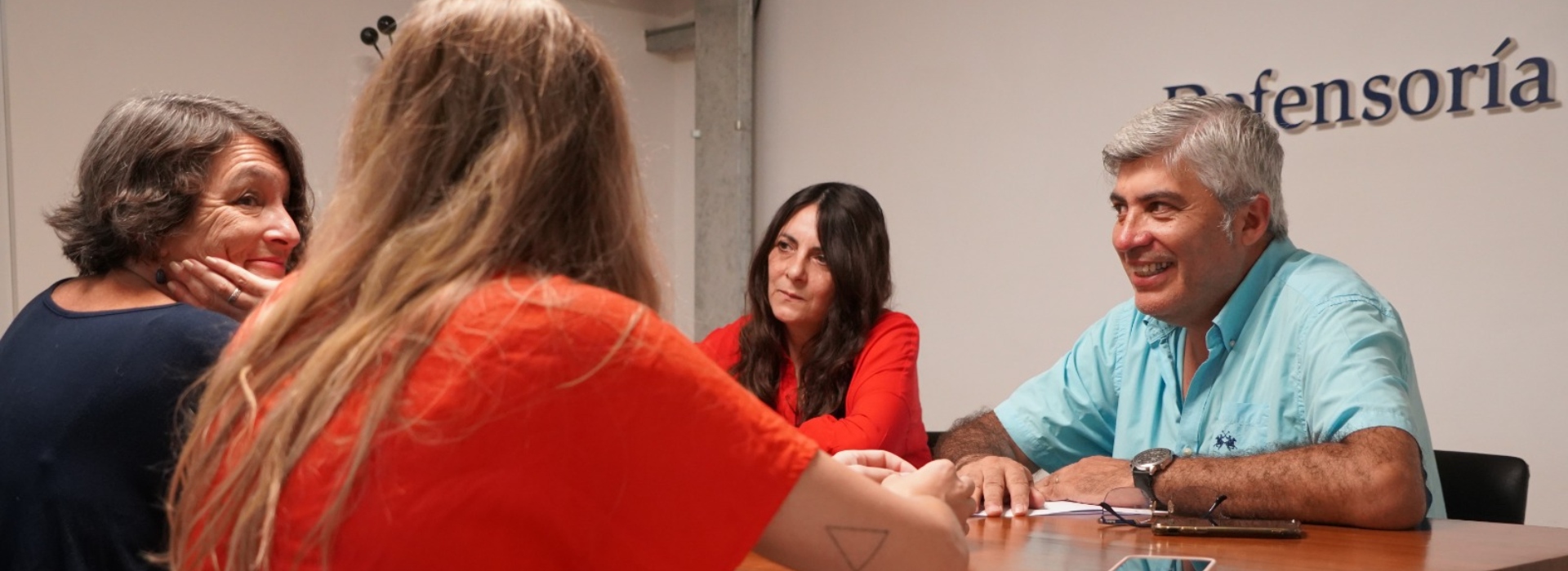 Durante la reunión, estuvieron presentes el secretario del área de Hábitat Tierra y Vivienda, de la Defensoría del Pueblo, Alejandro Rusconi; y la directora de Propiedades de la Dirección Provincial de Contrataciones, Convenios y Administración de Inmuebles de la DGCyE, Angela Panelo y la Subdirectora, Sandra Almirón.